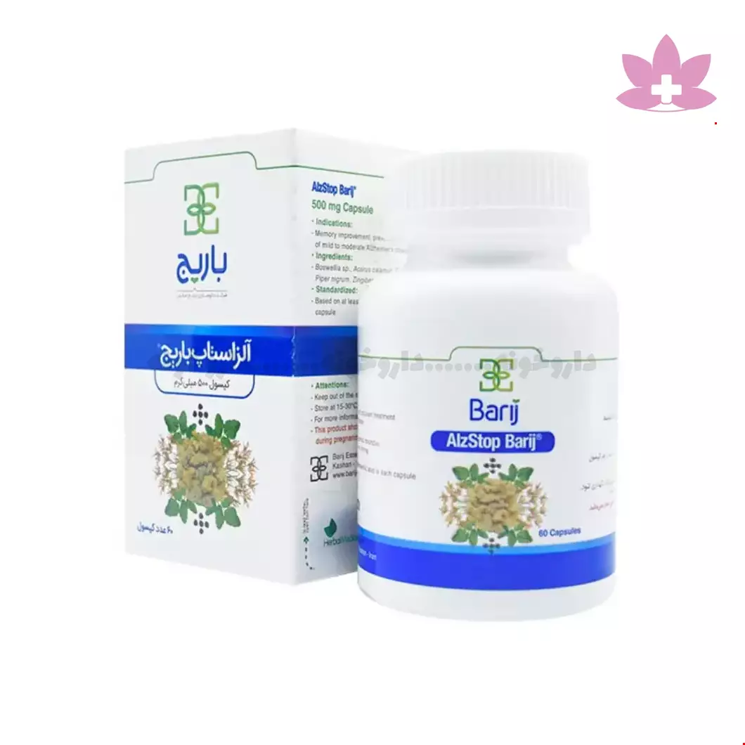 کپسول آلزاستاپ باریج حاوی کندر ، زنجبیل ، فلفل سیاه و عسل بوده که جهت تقویت حافظه و پیشگیری و بهبود آلزایمر مورد مصرف قرار می گیرد.